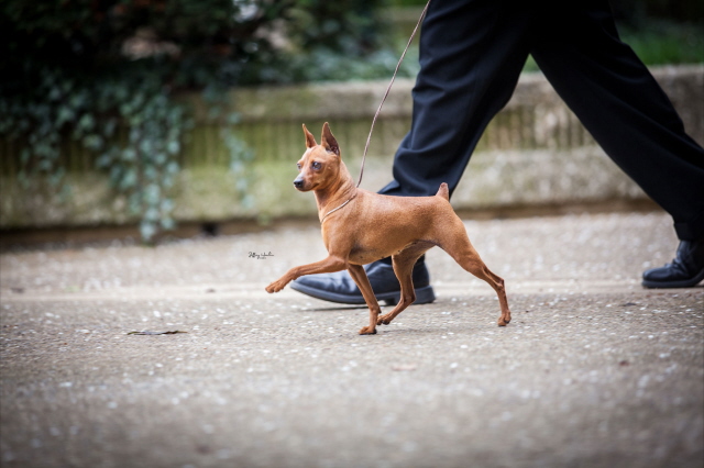 Os presentamos al representante de la raza pinscher miniatura en EEUU, es una bonita hembra 100% americana.